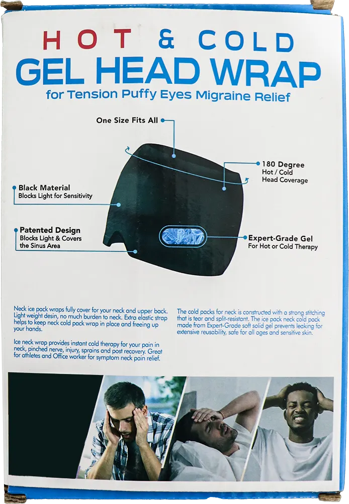 - قبعة العلاج الطبيعي البارد لتخفيف الصداع النصفي فريدة من نوعها في تصميمها المناسب بزاوية 360 درجة. لا يحتوي الكاب على حشوات صلبة أو شريط فيلكرو. ما عليك سوى سحب هذه الكمادة الباردة على عينيك ووجهك ورأسك. رائعة للعين والجمجمة وشد الوجه وتخفيف الإجهاد. منتجات مثالية لأولئك الذين يعانون من الصداع النصفي والصداع في كثير من الأحيان. عندما تستلقي على السرير أو على الكنبة بشكلٍ مريح مع وضع المنتج على رأسك، فإن تصميم الجل الناعم لن يضغط على مناطق معينة مثل حشوة عبوة الثلج الصلب.