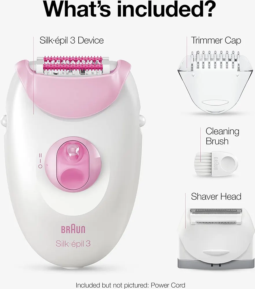 آلة إزالة الشعر Braun Silk-épil 3 - 3270 للجسم والساقين مع 3 ملحقات إضافية من براون