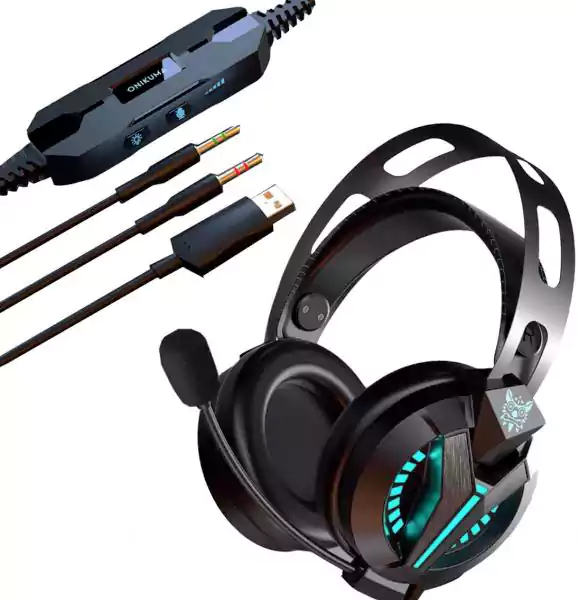 Onikuma Headset - M180 Pro, Compatible with Ps 4 and Xbox, Clear Sound, 2 Jack (for Headphone and Microphone), LED Light, Blue